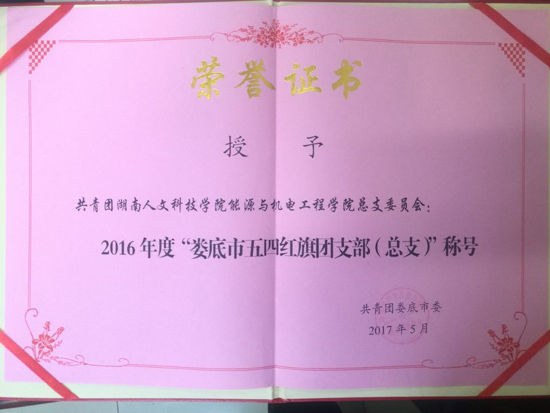 我院团总支荣获“娄底市五四红旗团支部(总支)”称号
