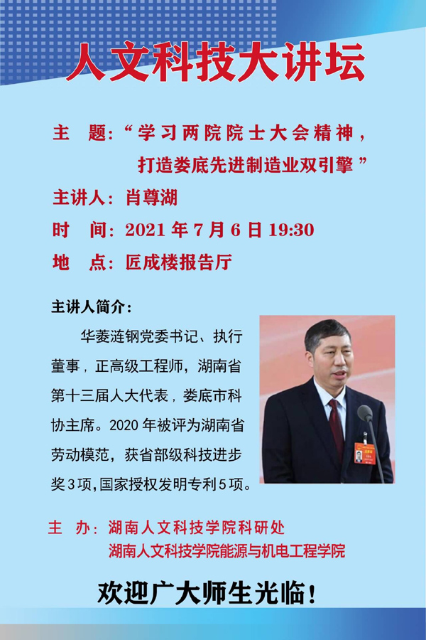 [主讲:肖尊湖]人文科技大讲坛的通知