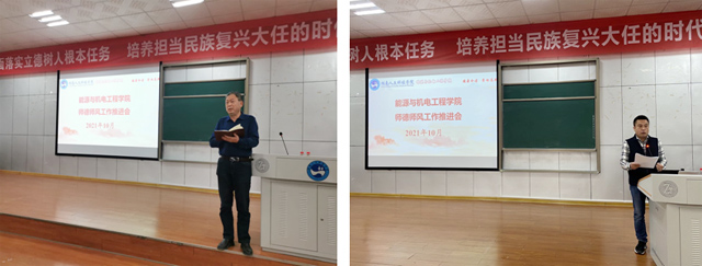 师德建设是教师工作的核心内容,“师者,以德为先”。良好的师德,高尚的师风是做好教育的灵魂。学高为师,身正为范。为深入学习贯彻习近平总书记全国教育大会及教师队伍建设、师德师风建设重要讲话精神,贯彻落实全国、全省高校思想政治工作会议精神,全面系统地加强学院师德师风建设工作,加强教师自身职业道德建设,提高道德规范与职业素养,强化育人事业心和责任感,将师德师风内涵落实到工作和行动中;近年来,能源与机电工程学院开展了一系列加强师德师风建设的活动。