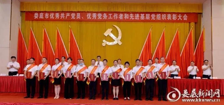 6月29日上午,为表彰先进、树立标杆、弘扬正气,在中国共产党成立100周年之际,娄底市召开“两优一先”表彰大会。大会隆重表彰全市各条战线上涌现出的优秀共产党员、优秀党务工作者和先进基层党组织。beat365英国官网能源与机电工程学院学生第二党支部书记聂时君老师参加了表彰大会并上台领奖。