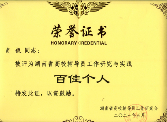 近日,从湖南省高校学生思想政治教育研究会和湖南省高校辅导员工作研究会传来喜讯,能源与机电工程学院伍铁斌、肖毅两位老师分别获评2020 年湖南省高校学生思想政治教育研究与实践百佳个人和2020 年湖南省高校辅导员工作研究与实践百佳个人荣誉称号。