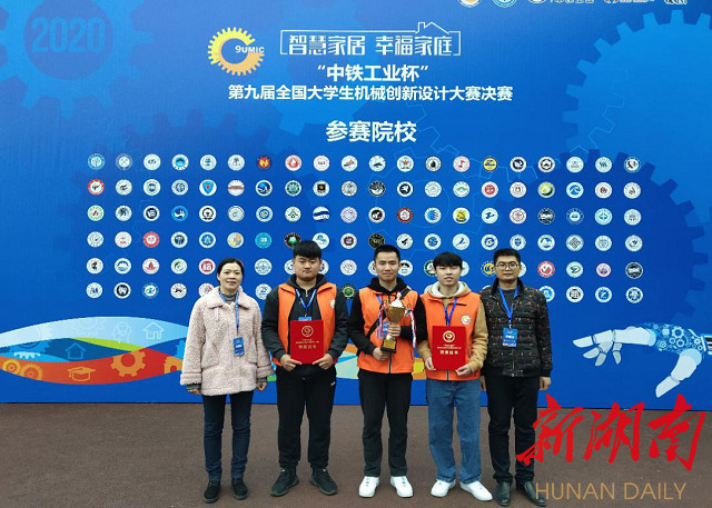 邓岭(左一)带领学生团队参加第九届全国大学生机械创新设计大赛决赛