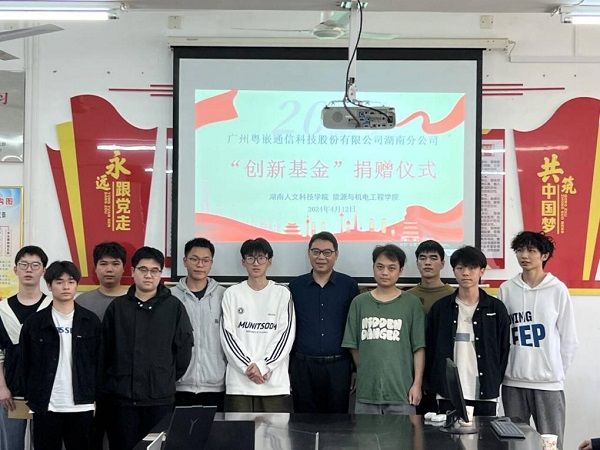 4月12日下午,广州粤嵌通信科技股份有限公司湖南分公司“创新基金”捐赠仪式在能源与机电工程学院同德楼306会议室举行。广州粤嵌通信科技股份有限公司湖南分公司总经理周阳受邀参加,能源与机电工程学院院长胡东、副院长伍铁斌、副院长王舒、部分师生出席会议。会议由副院长伍铁斌主持。