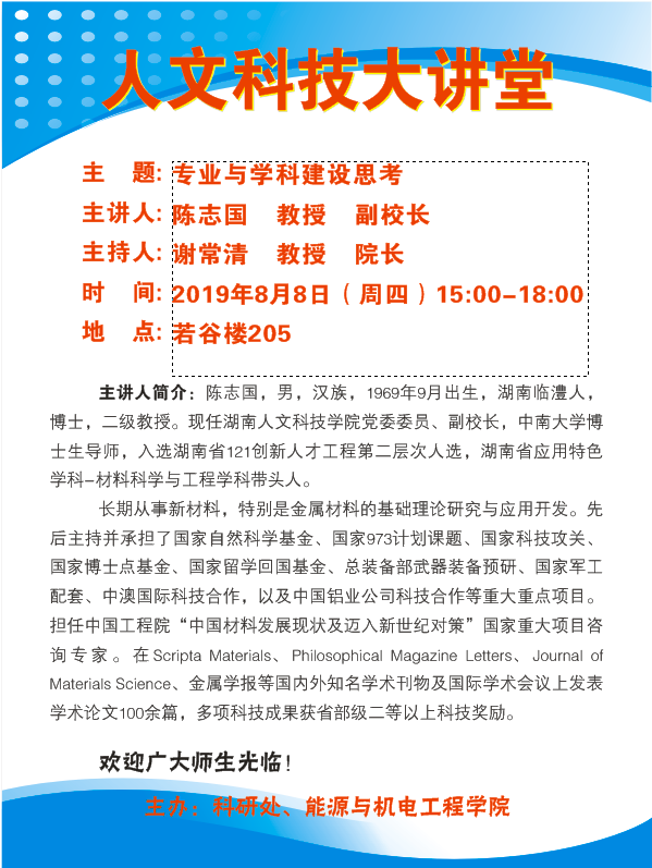 [主讲:陈志国]人文科技大讲坛的通知