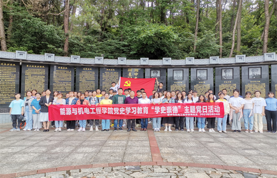 为扎实推进党史学习教育,追溯红色记忆,汲取信仰力量,5月24日,能源与机电工程学院学生党支部赴珠山公园北门全民国防教育基地开展党史学习教育“学史崇德”主题党日活动。学院党总支书记谢常清、党总支副书记石海、学生党支部书记、组织员等参加活动。