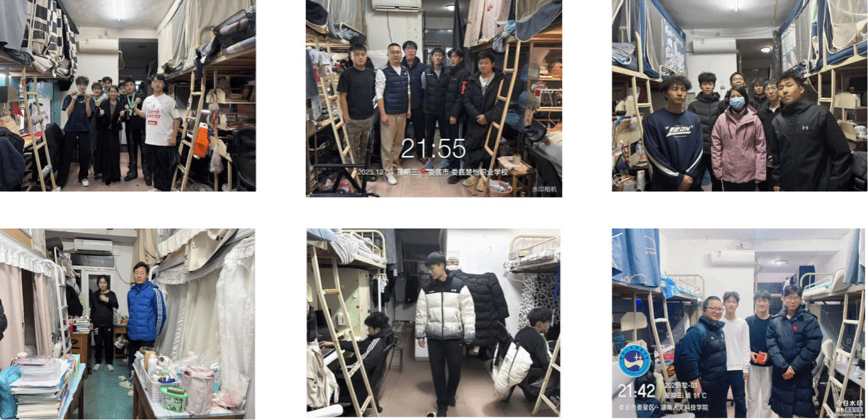 为进一步强化学生宿舍管理,筑牢校园安全防线,加强学风建设,12月3日晚21点,体育学院组织全体辅导员、班主任开展大查寝活动,以实际行动守护学生在校安全与成长。
