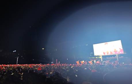 晚上7时30分,在祖国70华诞来领之际,学校在海园广场举办了《我和我的祖国》大型红歌晚会,此次晚会意在丰富新生军训生活,营造健康向上的文化氛围,培养学生为祖国抛头颅、洒热血献身自我的爱国情怀。军歌的嘹亮,映衬了祖国的繁荣昌盛,鲜艳的五星红旗,伟大的祖国你的名字比我生命更重要。我院学生在整场晚会中跟唱着红歌,挥舞着手中的国旗,缅怀着革命先辈的光荣事迹。中国梦在你我心中萌芽,70年我们风雨同舟。