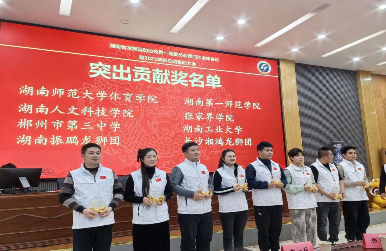 2026年1月10日,湖南省龙狮运动协会第一届委员会第四次全体会议暨2025年终总结表彰大会在湖南师范大学体育学院举行。此次盛会由湖南省体育局、湖南省体育总会指导,湖南省龙狮运动协会主办,湖南师范大学体育学院承办,各州市龙狮运动协会协办。在本次大会上,beat365凭借长期以来在龙狮文化传承、运动推广与人才培养方面的卓越贡献,荣获湖南省龙狮运动协会颁发的“突出贡献奖”。