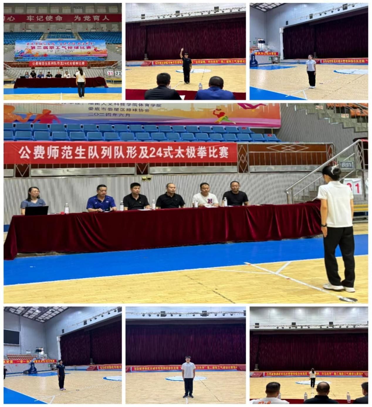 在比赛过程中,选手们口令熟练、声音洪亮,队列队形动作连贯、协调一致,展现出了高度的专业素养。在24式太极拳的表演中,选手们姿势标准、手型、手法、步型、步法以及腿法等均完成得清晰、标准,充分展现了我院公费师范生的扎实基本功和出色的体育核心素养。