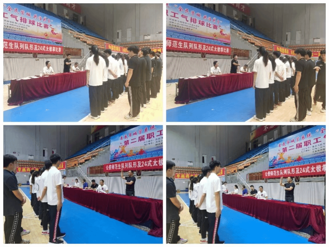 盛夏七月,热情如火。体育学院体育馆内,一场别开生面的体教专业公费师范生队列队形及24式太极拳比赛热烈展开。队列队形作为体育教师必备的基本技能,对于构建高效、有序的体育课堂至关重要。24式太极拳的掌握,不仅有助于学生健身需求的满足,更能提升教学质量,促进学生的身心健康,传承与弘扬我国的传统文化。本次比赛汇聚了17位优秀选手,他们同台竞技,充分展示了自己在队列队形和24式太极拳方面的训练成果。