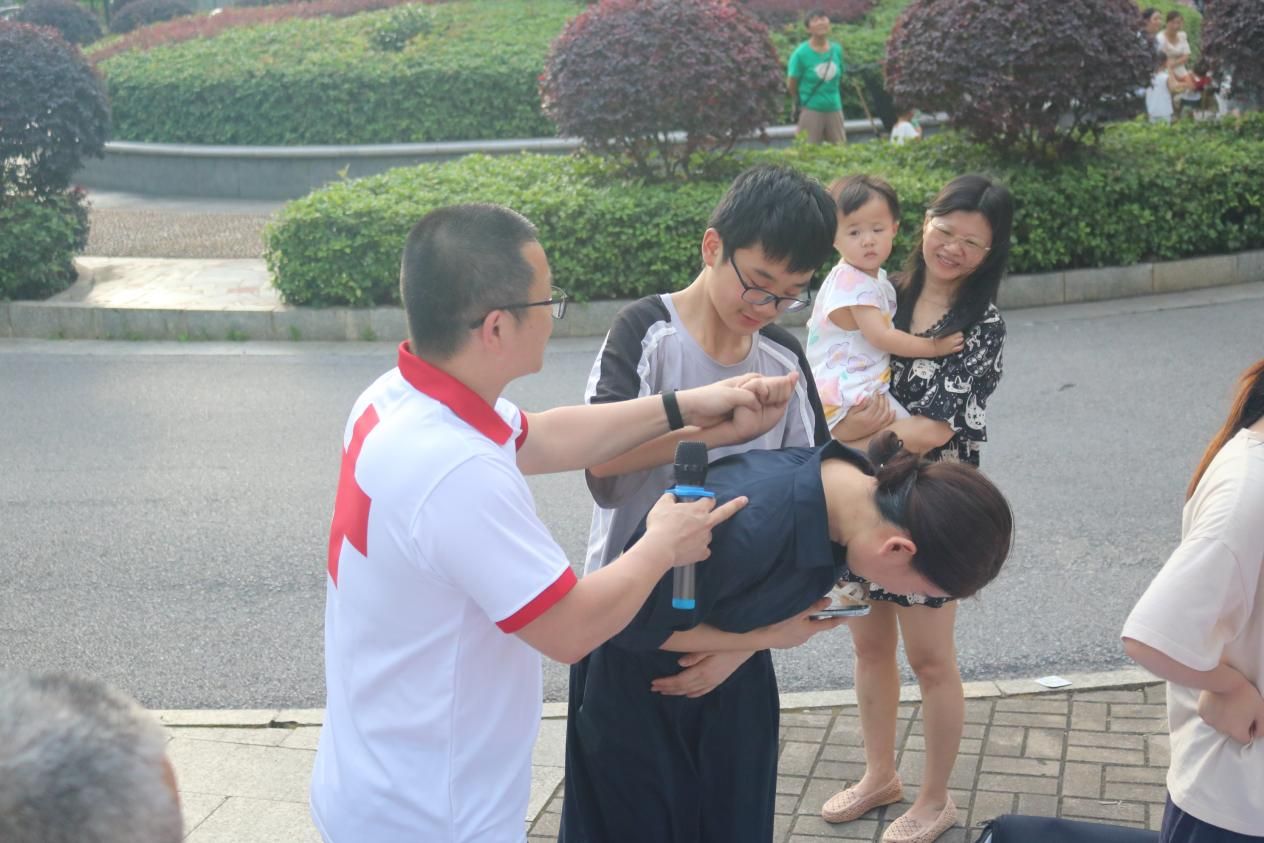 6月17日,beat365英国官网体育学院红十字志愿服务团队在肖俊老师带领下,于南风苑小区开展“健康同行,红十字‘救’在身边”应急救护培训志愿服务活动。本次活动由娄底市红十字会提供技术支持,教师团队杨赳赳教授和邹秋英博士全程参与教学与组织。活动以“人道、博爱、奉献”红十字精神为引领,践行“人人学急救,急救为人人”宗旨,面向小区居民免费传授心肺复苏(CPR)、海姆利克急救法、止血包扎等实用技能,吸引百余居民参与。
