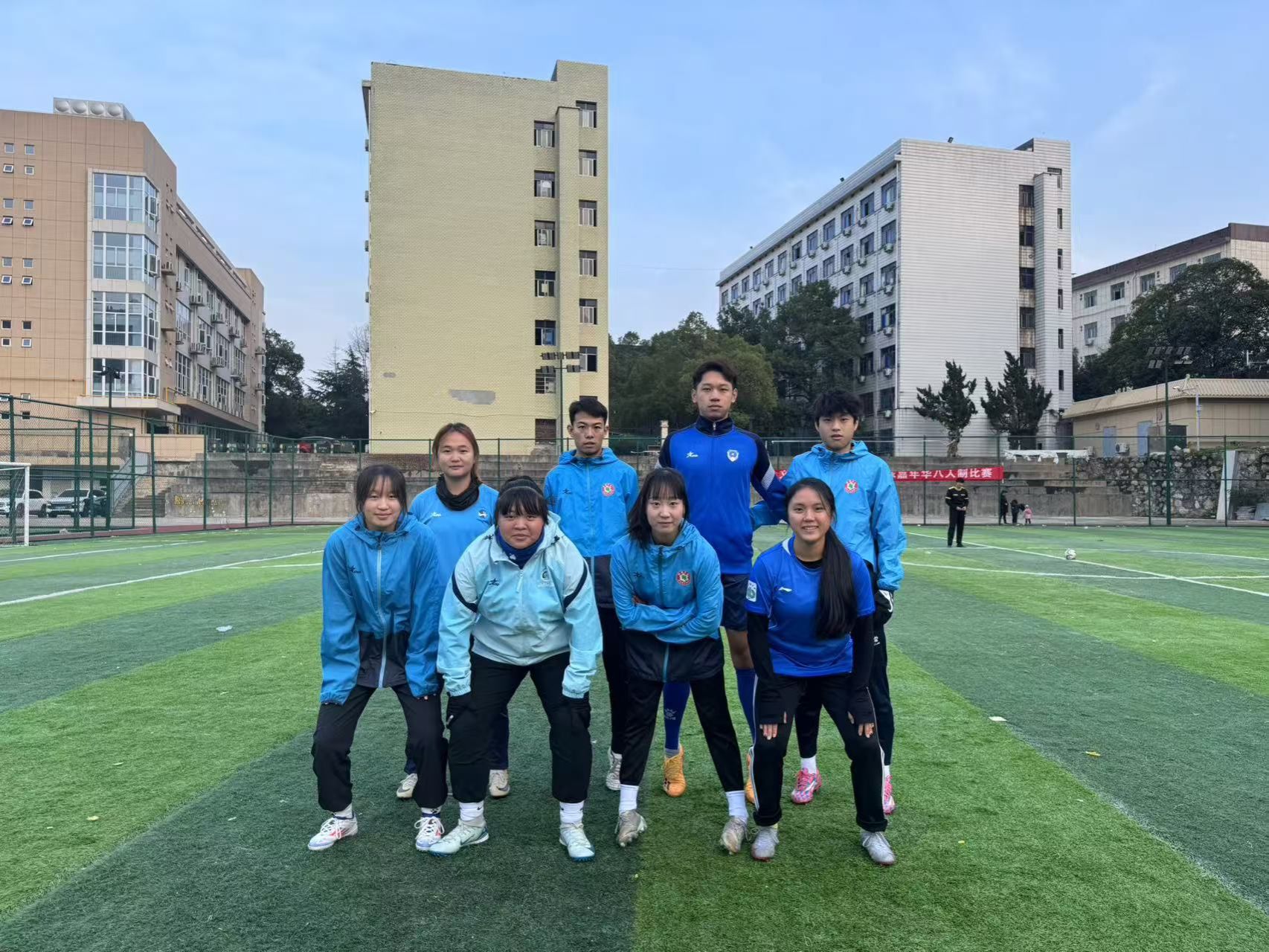 为了深化运动训练专业足球专修课程的教学实践,体育学院精心策划了一场别开生面的八人制足球教学比赛,旨在将理论知识与实战技巧深度融合,让2022级、2023级和2024级足球专修班的学子们在绿茵场上挥洒汗水,智慧碰撞。赛事于2024年12月11日在体育学院的新足球场上拉开帷幕,本轮⽐赛分为两场,22级2队VS24级2队,以及24级1队VS23级2队。这不仅是一场技艺的较量,更是对战术理解、技术运用及团队合作能力的全方位考验,为提升教学质量、加深学生对足球精髓的理解搭建了坚实平台。