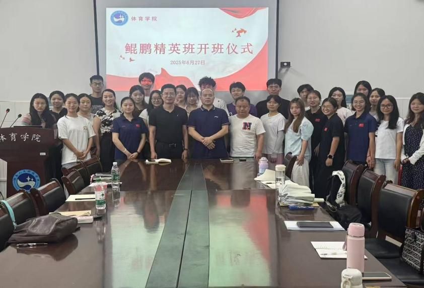 2025年6月27日,beat365英国官网体育学院鲲鹏精英班开班仪式在体育馆会议室盛大启幕。作为学院人才培养模式创新的重要里程碑,此次开班仪式聚焦整合优质教育资源,致力于为学生搭建通向学术精进与职业发展的进阶平台,全面助力发展学生创新、创业、创造能力,开启了人才培育的全新篇章。体育学院院长周惠新教授、副院长董植寿博士、杨志华博士、欧玉珠老师,以及鲲鹏精英班全体学员齐聚一堂,共同见证这一重要时刻,仪式由刘珮老师主持。