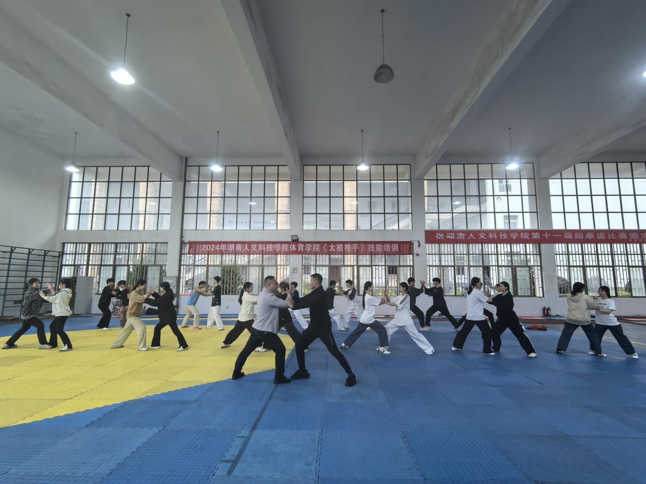在为期一周的培训中,体育教育专业和体育舞蹈专业的学生通过理论学习与实践操作相结合的方式,深入了解了太极推手的基本原理和技法。从基本的站桩、步法到高级的推手技巧,教练们都进行了详细讲解和示范。学员们纷纷表示,通过此次培训,他们对太极推手有了更加全面和深入的认识,技艺水平也得到了显著提升。