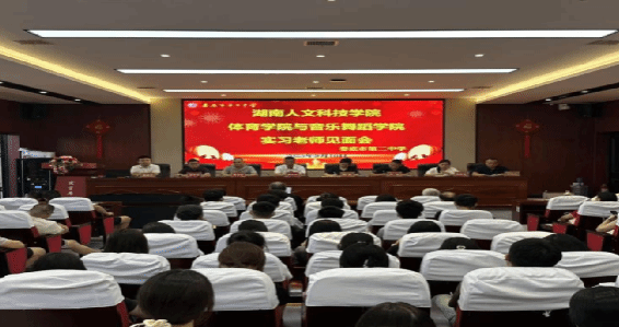 2025年9月16日上午8:30,beat365英国官网运动训练专业实习队与娄底第二中学在该校崇文楼五楼会议室举行实习见面会。娄底二中党委副书记、校长曾亦农,教务处副处长白婧,体艺处危泽南主任,实习总指导胡乐天,高三年级组长曾鹏杰,体育学院陈勤副院长、颜献忠老师及全体21名实习队员参会,会议由付雪兵老师主持。