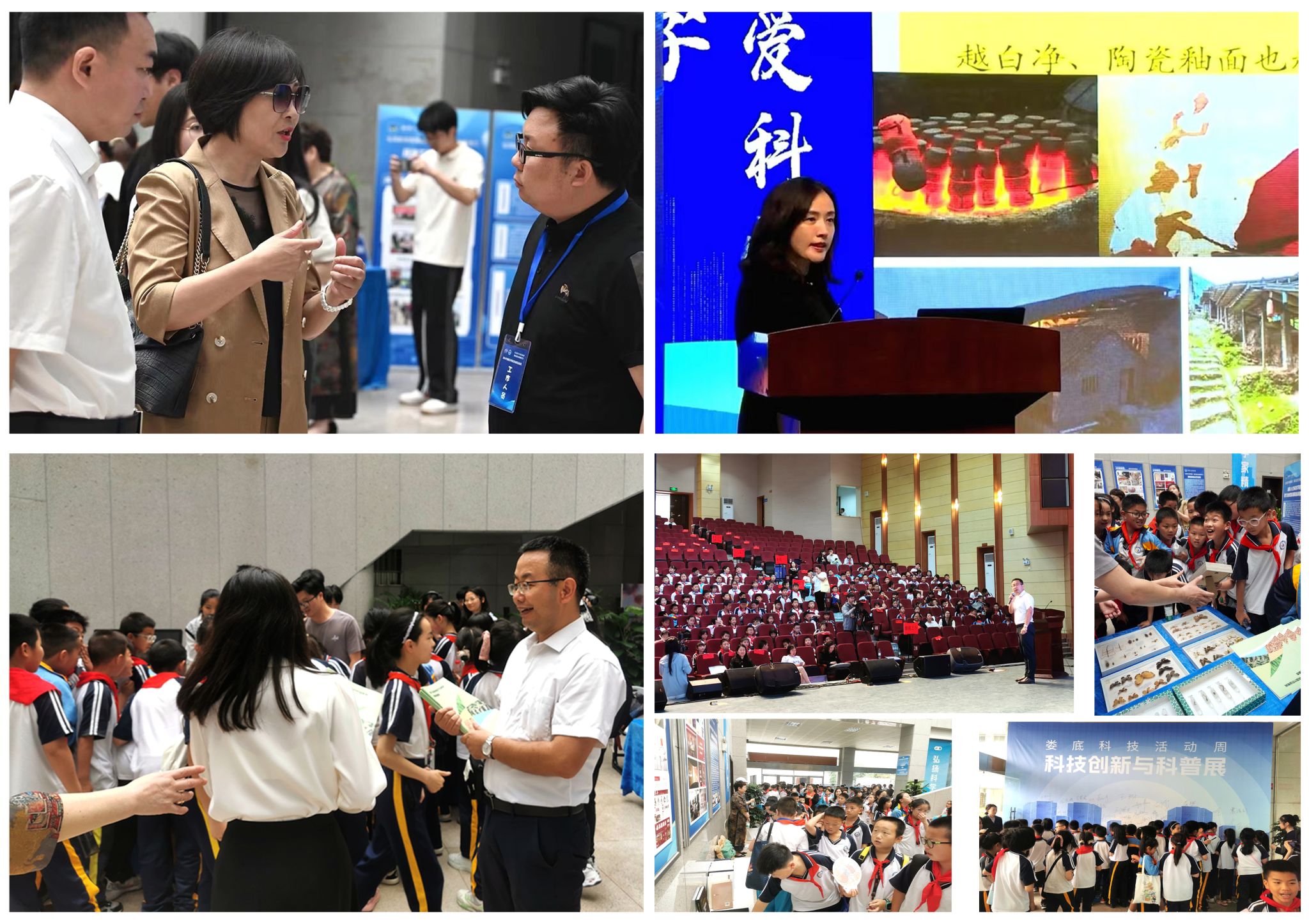 在科普展览区,徐益、龙选君为师生们展示并一一介绍了湖南省梅山文化基地教育教学、科学研究、社会服务等相关成果郭开发带领志愿者为师生展示植物、昆虫制作标本,吸引大量的师生参观交流。科普周期间,文瑾、郭开发分别为娄底一小、娄底三小320位师生代表做了《陶瓷:火与土的艺术》《菌草是株“幸福草”》两场生动有趣的科普讲座。