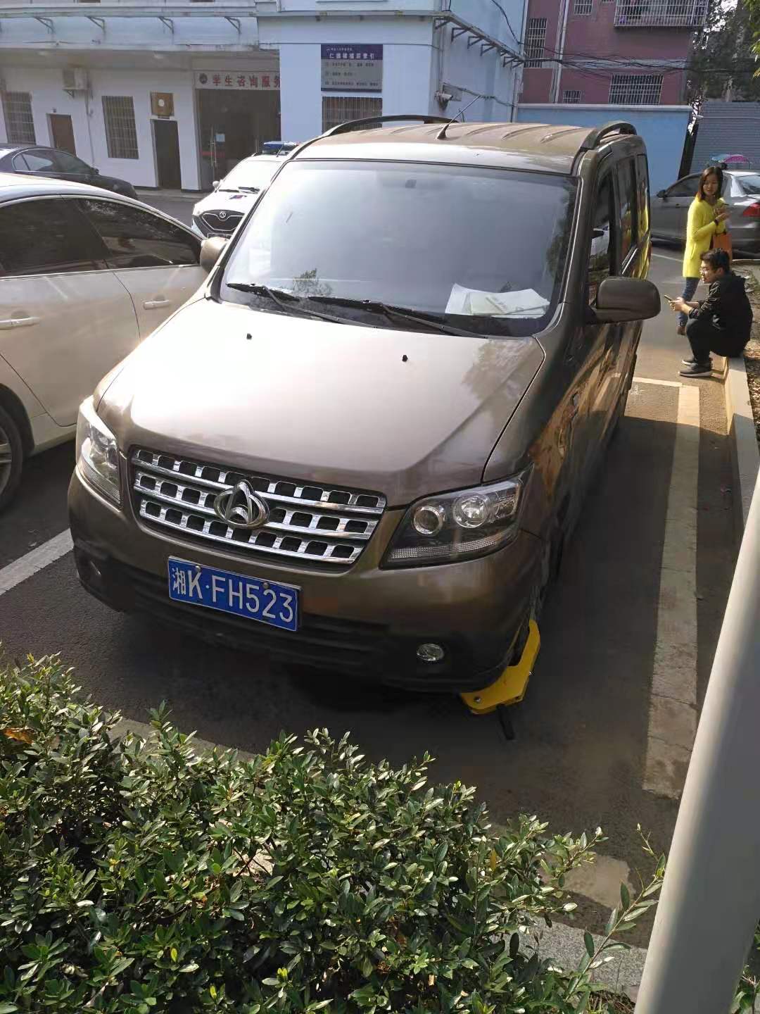 食堂前随意乱停车、查询不到具体信息锁车处理、经批评教育后开锁