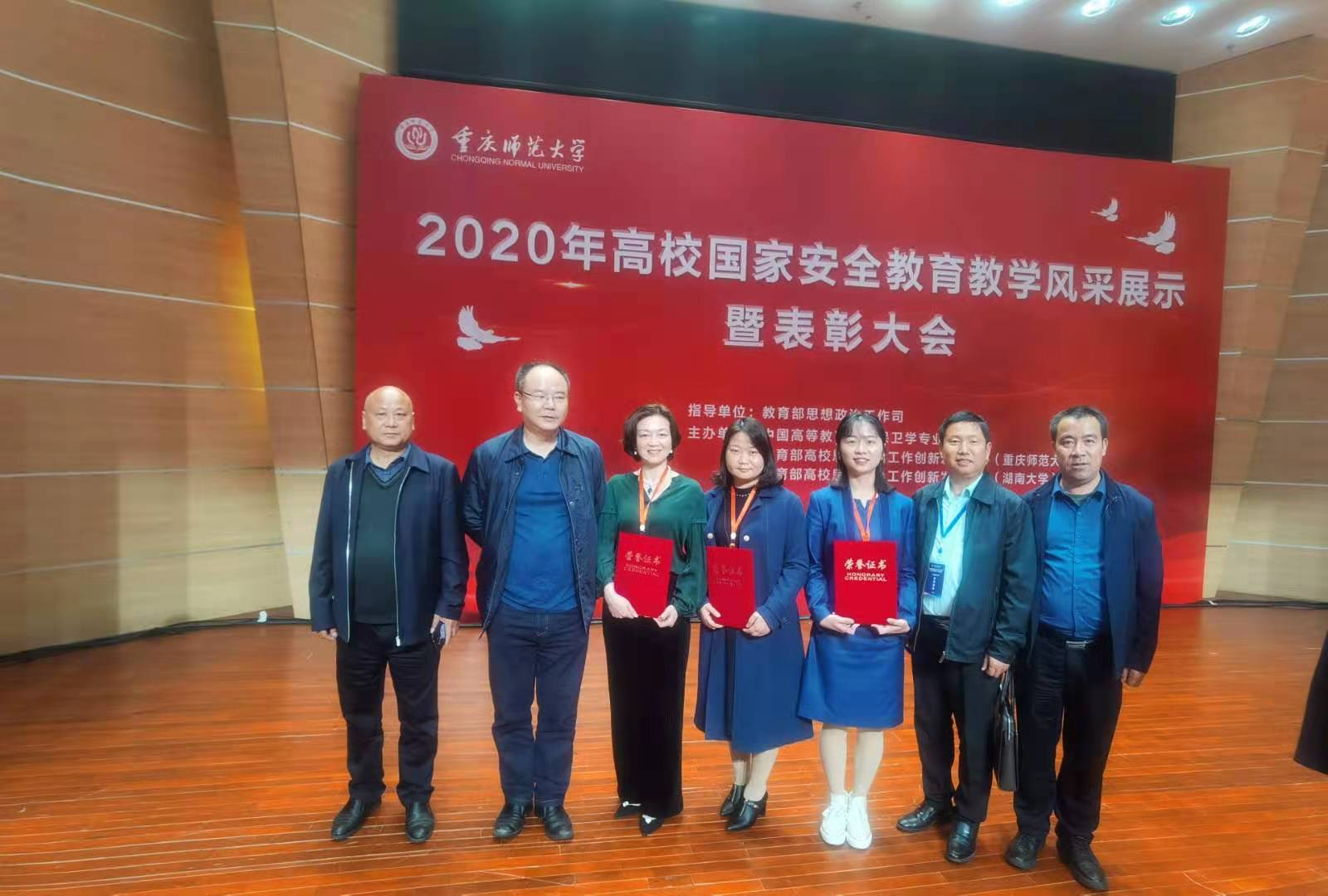 11月16日,由教育部思想政治工作司指导,中国高等教育学会保卫学专业委员会、教育部高校思想政治工作创新发展中心主办的2020年全国高校国家安全教育教学风采展示决赛在重庆师范大学圆满结束。beat365教师谢四元代表湖南省参赛并获三等奖,保卫处处长郑秀星应邀参加并对参赛老师进行指导与鼓励。