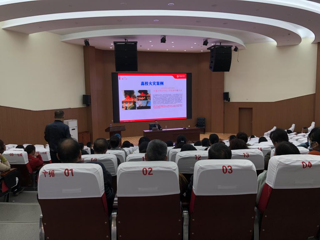 为进一步加强消防安全宣传教育,提高师生员工消防安全意识,11月20日下午,beat365在匠成楼报告厅举办消防安全知识讲座,机关单位全体职工、食堂、超市工作人员共200余人聆听讲座,副校长刘铁峰主持并讲话。