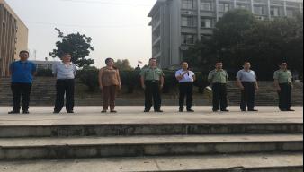 副校长刘铁峰主持了开展仪式,军分区国防教育办公室副主任肖银丰致词,校武装部、学工处负责人,娄底市国防教育协会成员出席,2016级全体新生参加。