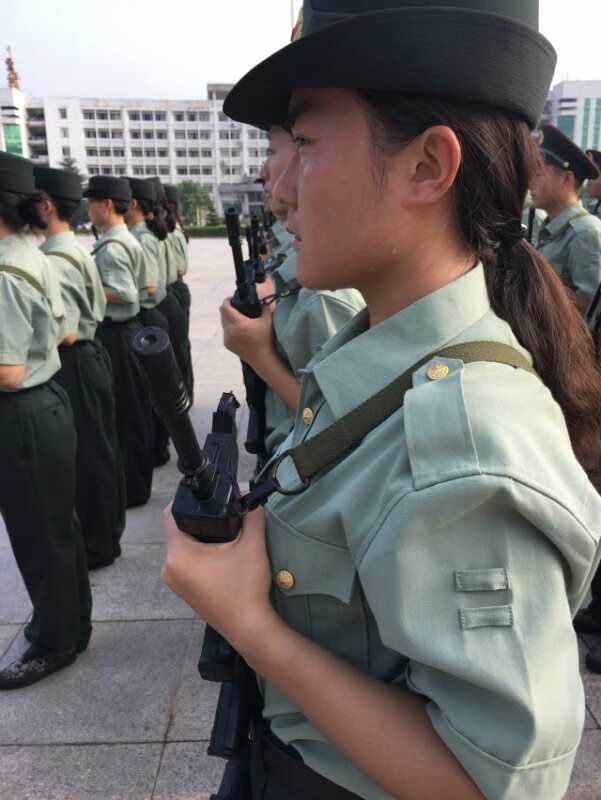 图为女教官烈日下的持枪训