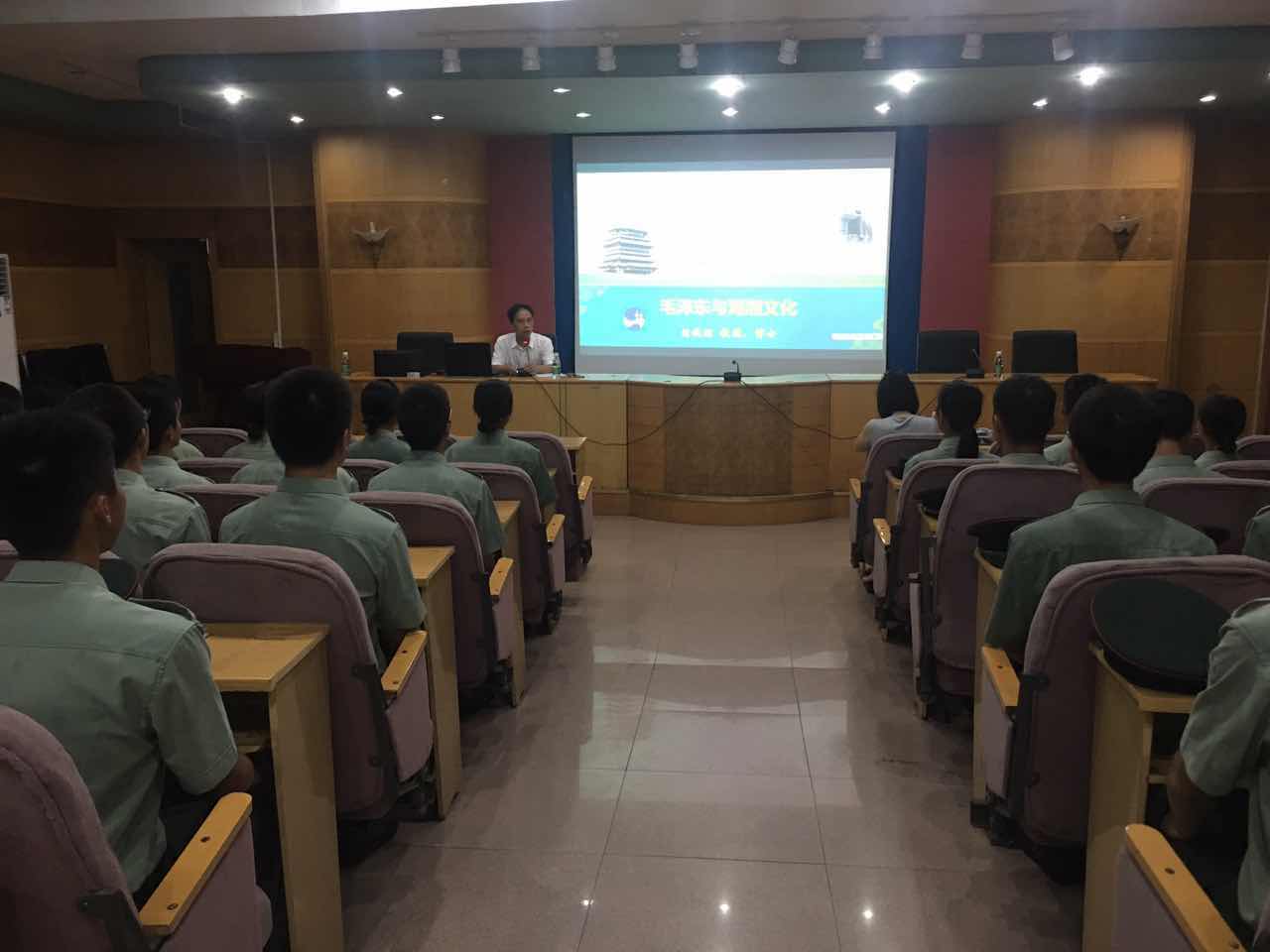 图为党委副书记刘铁铭教授为自训教官作做辅导报告