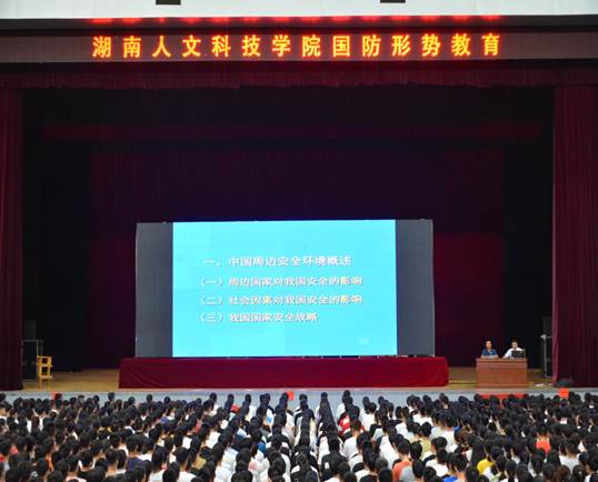 下午3:00,beat365邀请到了国防军事教育专家、湖南省国防教育研究院院长李先德教授以《中国周边安全环境》为题为新生作国防形势教育讲座。李教授向同学们讲解了国家目前面临的威胁,他举了中印边界问题、印巴问题、台湾问题、南海问题四个例子,详细地说明了我国目前的局势以及应对的策略。李先德教授的讲话朴实而真诚,赢得了同学们的阵阵掌声。