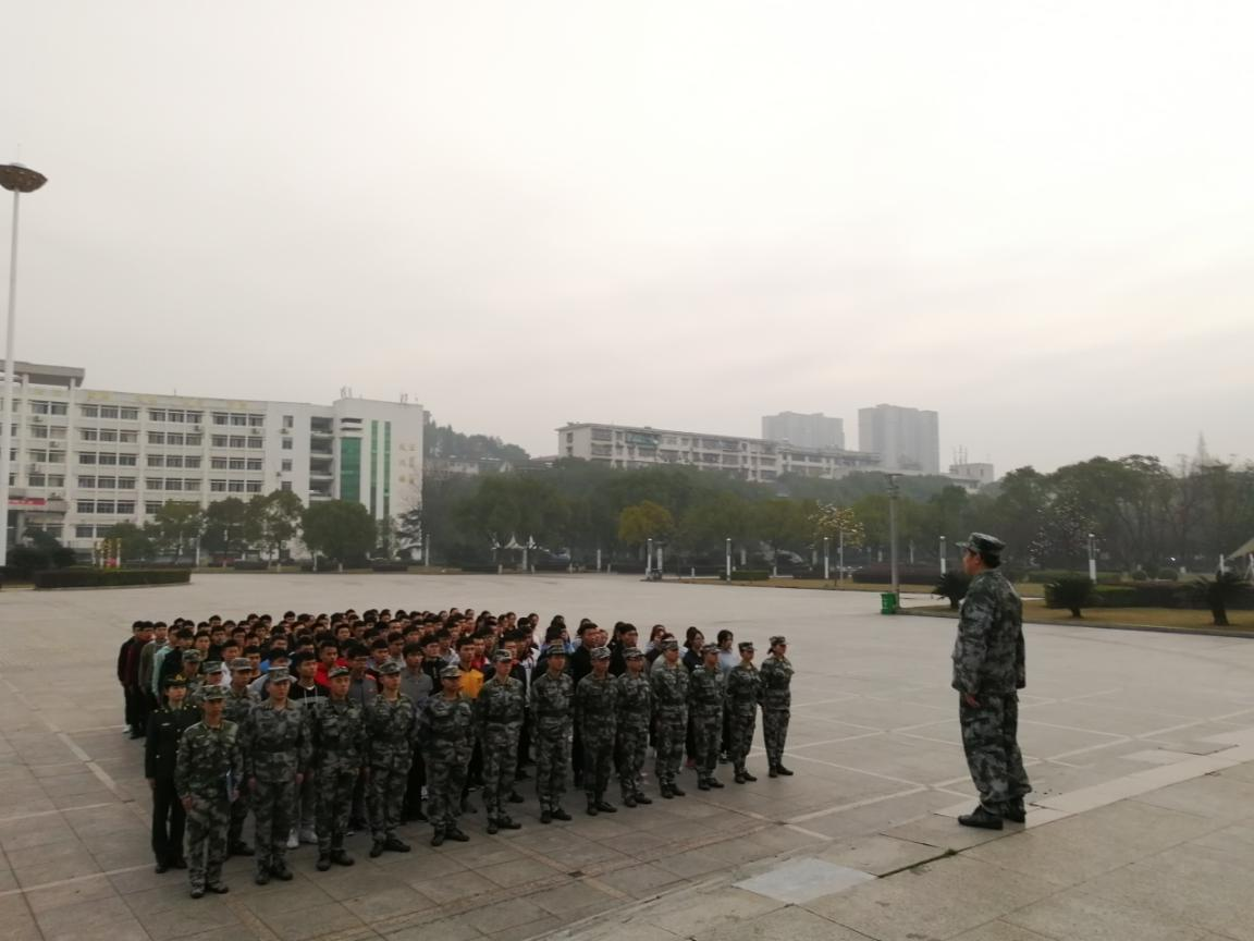 教导员曾杰做训前动员,要求队员们服从命令,听从指挥,严于律己,刻苦训练,为保质保量完成2019级新生军训而努力奋斗。