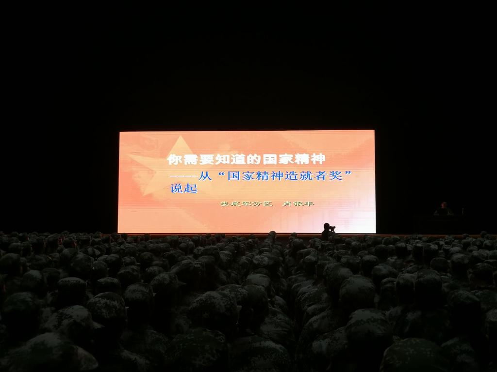 最后,娄底军分区政治工作处副主任肖银丰带来了以《你需要知道的国家精神》为主题的国防教育讲座,他从“国家精神造就者奖”说起,提出什么是国家精神?国家精神是一个国家,一个民族的魂。进而提出中国精神,中国精神是凝心聚力的兴国之现。随后分三个方面阐述了中国精神、古代中国精神、现代中国精神、近代中国精神。希望增强同学们的国防意识,敬爱尊重国家英雄,呼吁同学们的爱国之情。