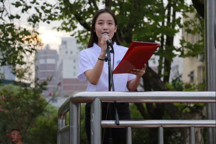 2022级新生体育学院李丹以“勿忘国耻,报国力行”为题发表国旗下讲话。她引经据典敬告新时代青年大学生,牢记历史,不忘国殇,勤奋学习,不忘使命,为中华民族伟大复兴贡献青春力量。