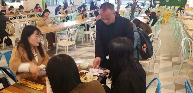 图为治安科科长李平在学生一食堂现场宣传讲解