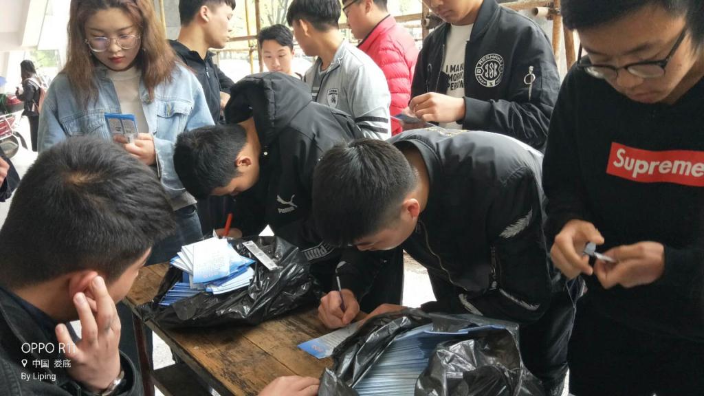图为学生在宣传册回执单上签名