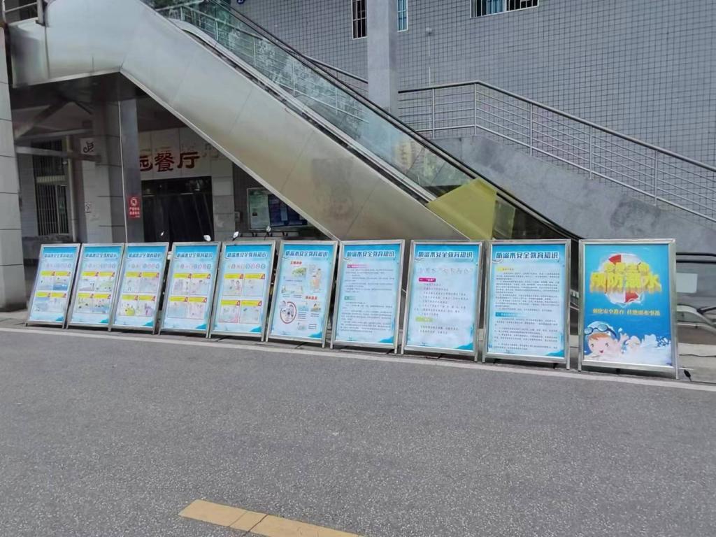 溺水事故对于做为成年人的广大师生来说并不陌生,池塘、河边、水库、泳池等等都存在诸多不确定的安全因素。特别是暑假即将来临同学、朋友相伴外出游玩的机会激增,这也给学校的安全管理工作带来很大的压力,防溺水事故的关键是做好预防,保卫处为此提前做好谋篇布局工作,一是通过网络学习平台要求每个学生进行相关的防溺水安全知识的学习、做到人人必学,人人都时刻牢记防溺水《七个不准》,二是充分利用校园的电子显示屏全天候播报防溺水的安全知识,时刻提醒全校师生牢记防溺水的各种要求,三是在人流量最大的食堂前坪摆放了专门制作防溺水事故的安全宣传展板。通过形式多样的宣传教育活动进一步夯实了广大师生防溺水的各种知识、为学校的平安校园建设打下良好的基础。(图/文 李平 苏继富)
