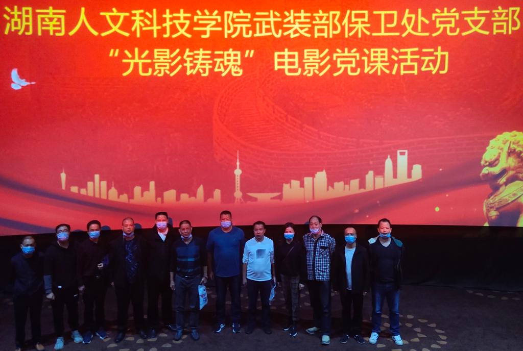 为进一步加强党员干部的思想教育,弘扬爱国主义精神,丰富精神文化生活,根据学校《关于开展“光影铸魂”电影党课的通知》文件精神,9月25日下午,武装部保卫处党支部组织全体党员干部和入党积极分子在娄底万达影城开展“光影铸魂”电影党课活动,观看爱国主义教育电影《八佰》。