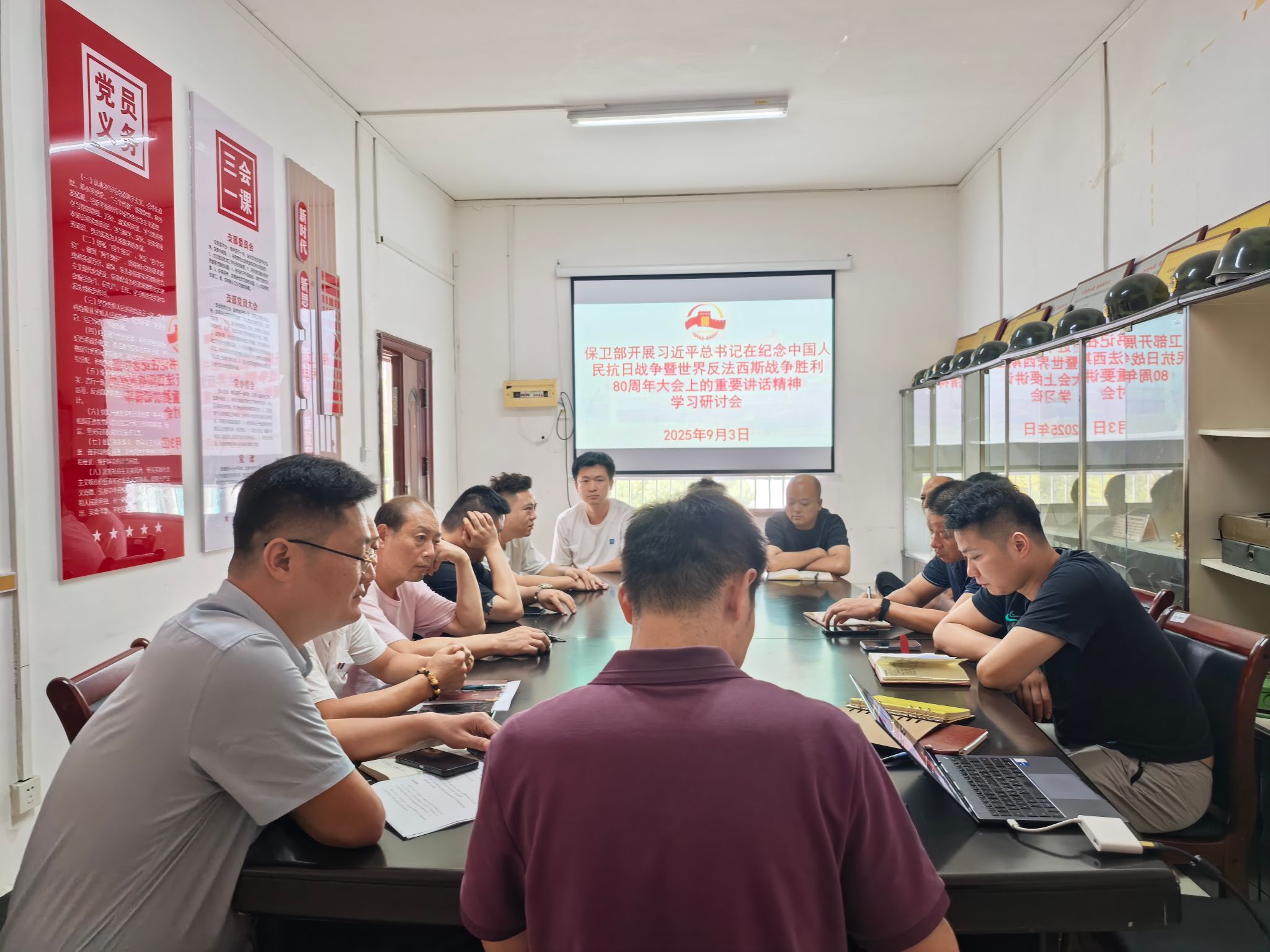 9月3日上午,纪念中国人民抗日战争暨世界反法西斯战争胜利80周年大会在北京隆重举行。9月3日下午,为深入学习贯彻习近平总书记在纪念中国人民抗日战争暨世界反法西斯战争胜利80周年大会上的重要讲话精神,保卫部组织全体教职工在仁德楼301室开展专题学习研讨会。会议由保卫部周友主持,校党委委员、副校长谭峰亮出席并讲话。
