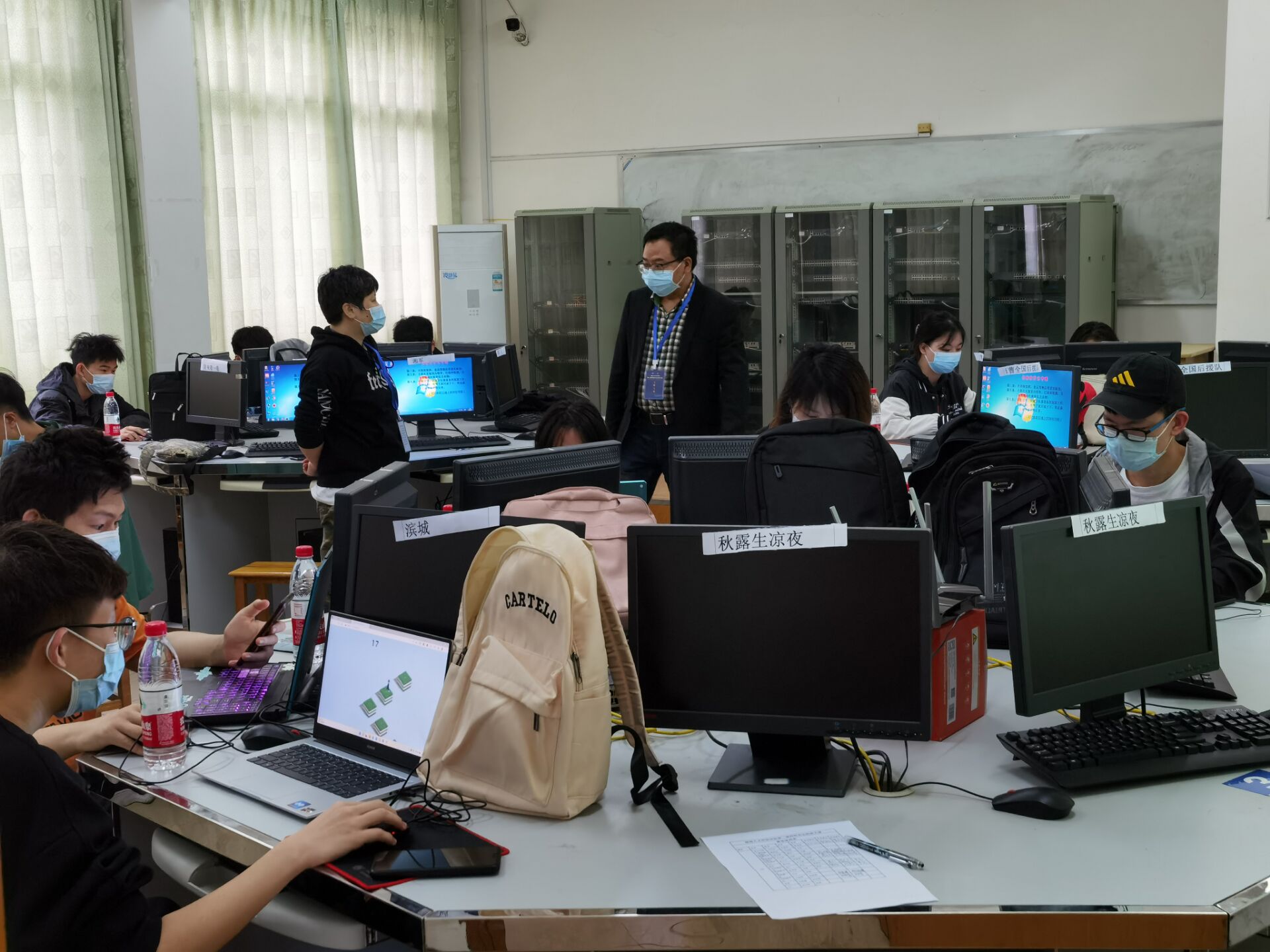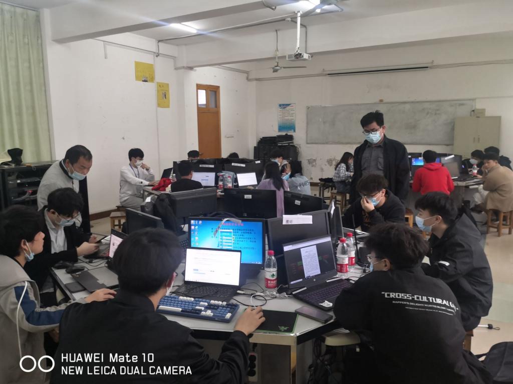 比赛开始后,彭智朝院长莅临现场指导,巡视了6个赛场,并就赛事开展工作与现场监考教师李曾妍、彭剑进行了交流。