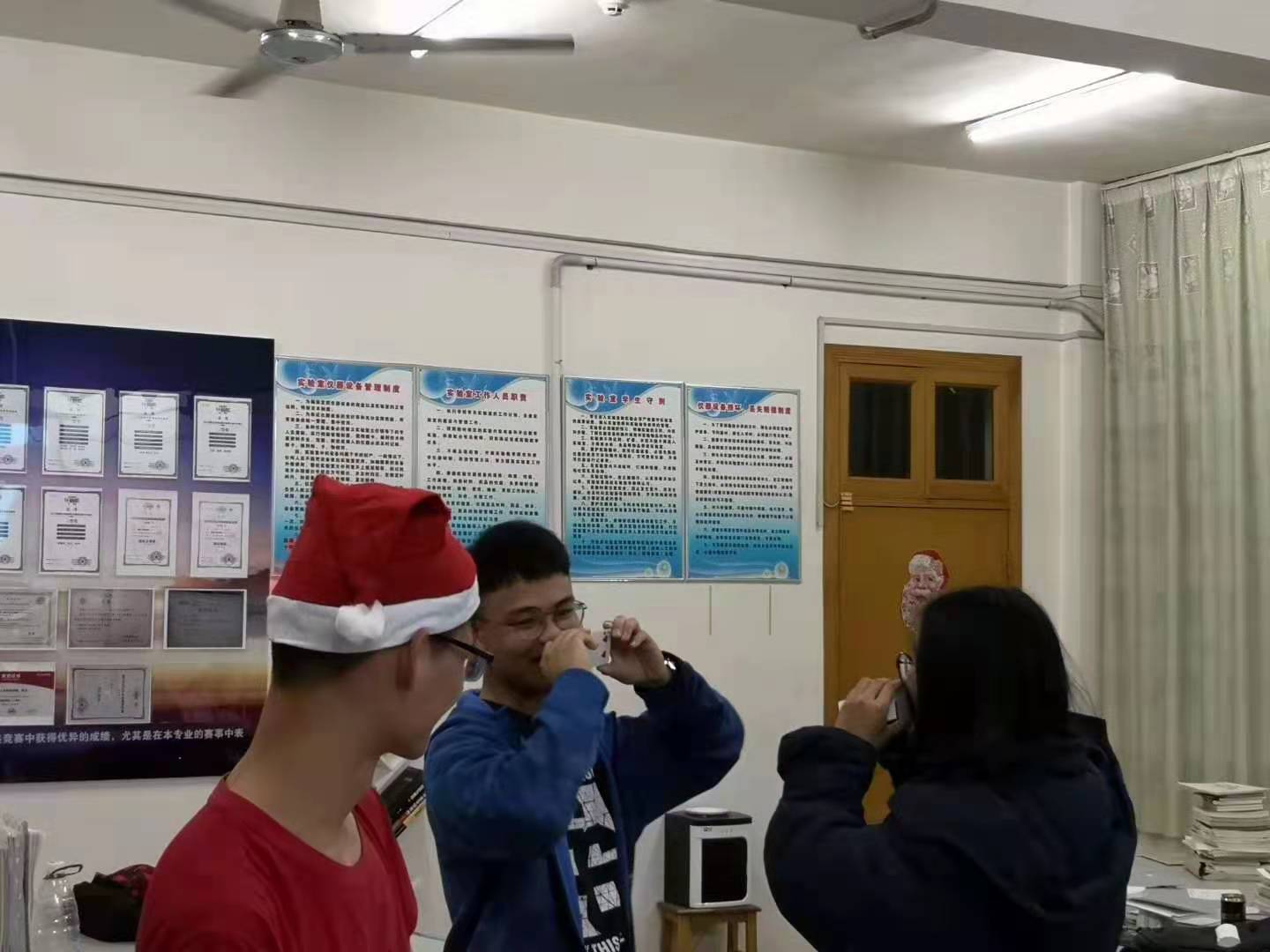 2019年12月25日晚7:30,网络工程专业的学生社团——网络空间安全协会的20多位同学们,在养根楼405举办了圣诞晚会,气氛热烈。此次活动由协会会长唐少雄同学负责组织筹办,网络工程教研室主任李曾妍老师对活动的举办给予了大力支持,与专业教师彭剑老师一起到现场参加了活动。