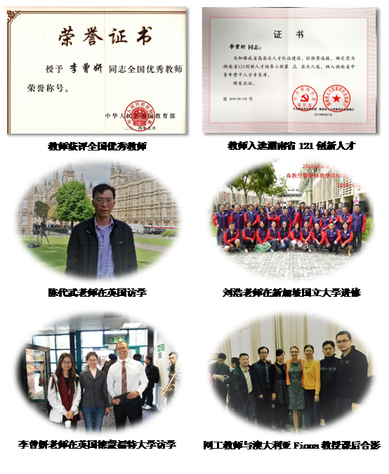 师资团队中全国优秀教师、省121创新人才、省青年骨干教师、海外名师云集,建设有湖南省一流本科课程3项、湖南省名师空间课堂等,1门专业课程被推荐参评国家级一流本科课程。曾获湖南省教学成果奖三等奖2项,2022年获校级教学成果奖一等奖1项、二等奖1项,教学质量一流。