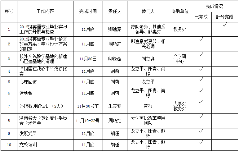 外语系2015年11月工作完成情况