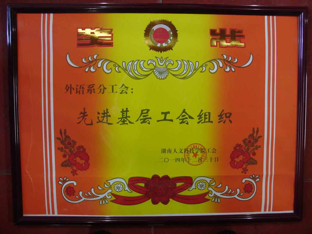 外语系分工会荣获beat3652014年度先进基层工会组织
