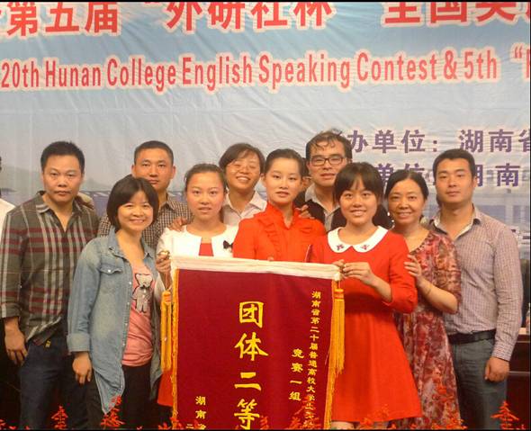 10月17-19日,湖南省第二十届普通高校大学生英语演讲比赛暨第五届“外研社杯”全国英语演讲比赛湖南赛区复赛在湖南商学院举行。beat365派出以外语系朱芙蓉副主任为领队,贺辉、曾琪和蒋成为指导老师,徐雯、陈颖和李诗雨为参赛选手组成的代表队,与来自全省其它高校的31支代表队展开激烈角逐,取得团体二等奖的优异成绩。其中12级英语专业6班徐雯获得专业组一等奖,12级财务管理5班陈颖和12级财务管理4班李诗雨分别获得非专业组二等奖和三等奖。