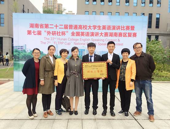 2016年10月22日至23日,“湖南省第二十二届普通高校大学生英语演讲比赛暨第七届‘外研社杯’全国英语演讲大赛湖南赛区复赛”在湖南文理学院成功举办。常德淅淅沥沥的小雨也丝毫未影响参赛选手火一样的澎湃激情。由外国语学院周巧红院长亲自挂帅,朱芙蓉副院长领队,黄敏、蒋成、贺靓三位老师指导,谭英杰、张志伟、黄丹三位同学代表beat365获大赛竞赛一组团体三等奖。其中2014级商学院谭英杰同学获个人一等奖,2014级信息学院张志伟同学获个人三等奖。