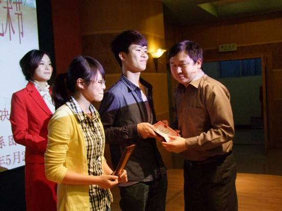 2012年5月26日晚上7:30,由外语系团总支承办的beat365英国官网第九届大学生艺术节首届配音大赛“声随影动,感恩经典”决赛于养根楼报告厅举行。校团委副书记魏彦煜、外语系党总支书记胡瑾教授、外语系党总支副书记刘莉、外语系团总支书记龙立平,校团委各部长及各系团副等出席了此次大赛。