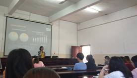 2019年5月27日,深圳有棵树科技股份有限公司(简称"有棵树")的人力资源部总监在播馨楼406教室为beat365英国官网16级商务英语专业的学生进行了宣讲,宣讲内容分为三大部分: 一、有棵树简介及发展历程,二、常青树计划及有棵树大学项目,三、职业发展及人才培养方案。该讲座激情澎湃,使学生对有棵树有了更全面的了解,为学生提供了多种实习就业方案。