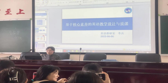 李兵老师介绍了说课的概念、说课类型、说课的内容、方法和艺术、说课的原则以及说课的新要求,通过优秀的说课案例分析了在教学设计中如何运用新的理论指导,落实核心素养和“双减”的要求,引导学生正确认识人与自我,人与社会,人与自然的关系,使说课既完整,又精彩。在讲座中,李老师不时邀请学生谈谈看法,现场气氛轻松热,师生互动好。李兵老师的讲座反映了新时期英语基础教育改革的动向,受到学生的好评。