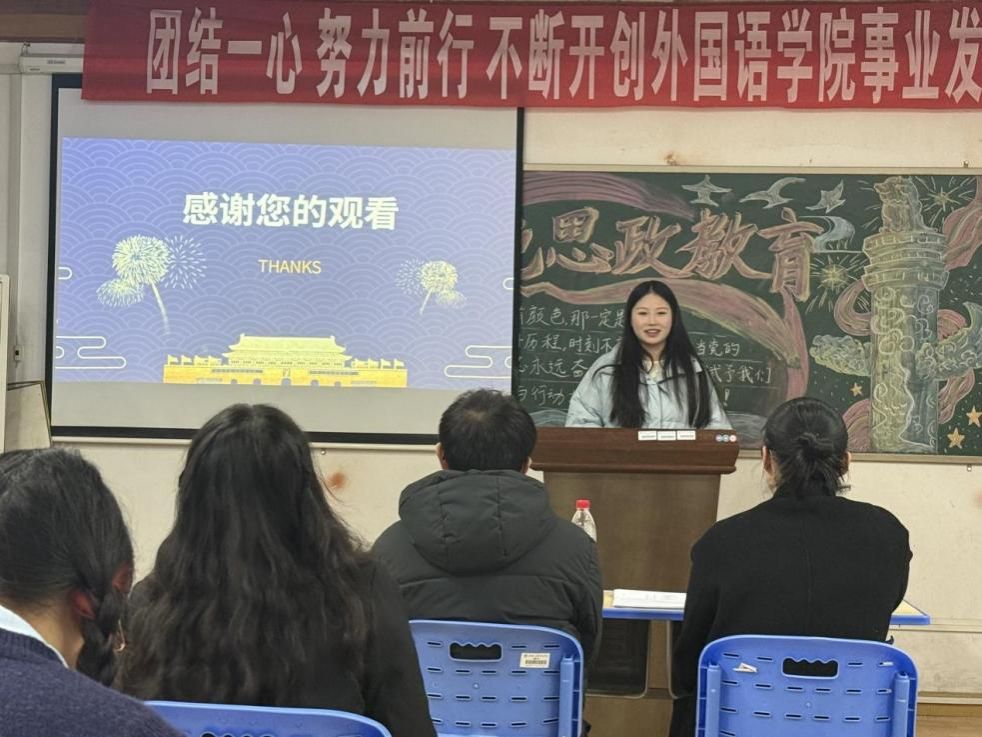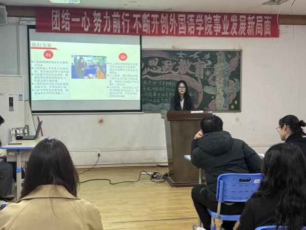 为引导学生树立科学的职业发展观念,提前规划职业生涯,2025年12月1日晚,外国语学院在播馨楼301教室举办了职要有你一大学生职业生涯规划大赛院赛。外国语学院学工办主任朱倩、团总支书记满英杰担任现场评委。