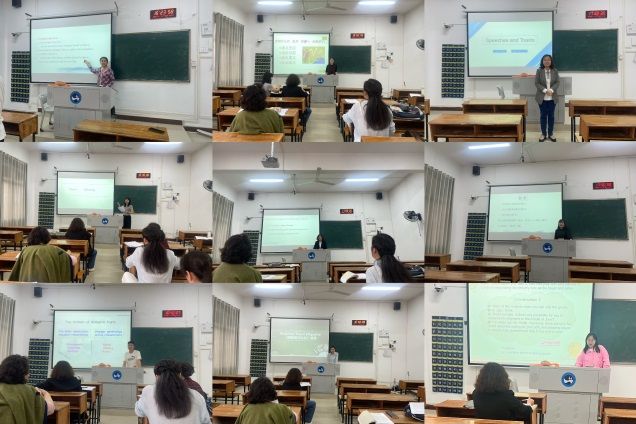 本次活动以“说课亮设计、评课促精进”为主题,全体教师围绕教学目标、教学重难点、教学过程、思政融入与实践创新等方面进行说课展示,并开展深度评课研讨。其中,杨蔚老师以经典案例为导入,解析如何通过适当的写作技巧将“文化自信”“创新精神”等融入写作框架,引导学生用英语写出好文章;刘连芳老师在她的课程设计中,突出翻译作为文化传播桥梁的作用,致力于鼓励学生传播中国优秀文化;王春晖老师则强调商务活动中诚信的重要性,将职业道德等融入教学。其他教师也依次展示了自己的课程设计思路及亮点。