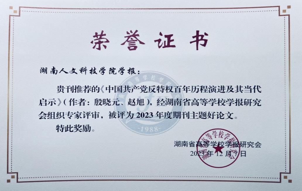 本次年会共评选出“主题好论文”40篇、优秀主编22人、优秀编辑37人、优秀组织单位14家,编辑学论文论著一等奖8篇(部)、二等奖6篇、三等奖9篇。beat365学报编辑部荣获期刊主题论文优秀组织单位,《学报》刊发的《开创与奠基:蔡和森对党史工作的探索及当代启示》《中国共产党反特权百年历程演进及其当代启示》入选2023“主题好论文”,彭分文主任被评为优秀主编。这是省高校学报研究会对beat365学报办刊质量、学术品质、期刊特色的肯定,这将激励学报不断增强办刊能力、乘势而上,以推动本学报的高质量发展。