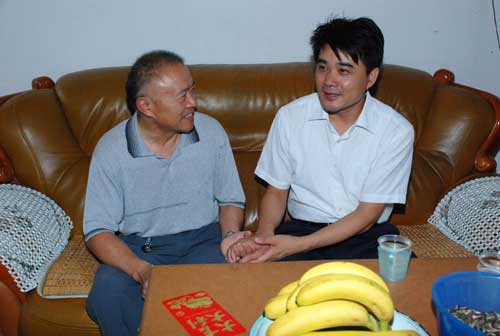 在中文系退休老师彭逢澍教授家,柏书记拉着彭教授的手,询问他退休后的生活情况。彭教授是中文系的元老级人物,是曾宪梓教师奖等多项荣誉的获得者,如今他虽然退休了,但仍然以教学督导的身份为学校教育教学发展出力。得知彭教授退休后的生活充实而丰富,柏书记很是欣慰。彭教授对学校工作很有见解,他特别提到了目前抓紧抓好大学生思想政治工作的必要性和重要性,认为应该多树立蒋小波同学这样的先进典型,多从正面激励鼓舞大学生们积极健康地成长成才。柏书记称赞彭教授的意见非常有建设性和现实意义。