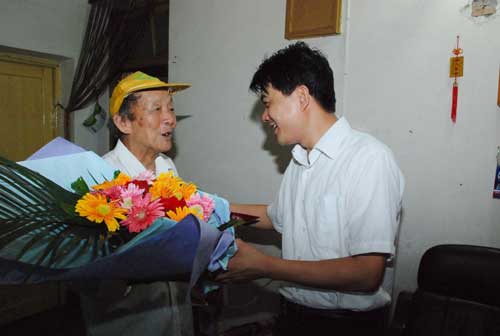 数学系年逾八旬的老教师梁复华得知柏书记要来看望,高兴地下楼迎候。柏书记握着老先生的手亲切地交谈着走进梁家。梁老虽然年逾八旬,但精神矍铄,谈兴甚浓。他感谢学校对老同志的关心,夸奖学校这些年来变化巨大,事业兴旺。柏书记感谢梁老对学校建设发展所做的贡献,希望他继续关心学校事业,并祝愿梁老保重身体,健康长寿。